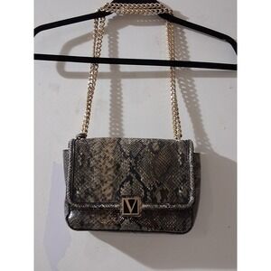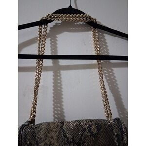 Victorias Secret Snakeskin Print Shoulder Bag Gold Chain Strap Grey Brown Flap