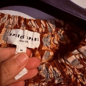 Apiece Apart Rust Floral Smocked Neck Blouse