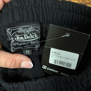Von Dutch Black Joggers with Beaded pink/reddish Logo Size: Medium NWT