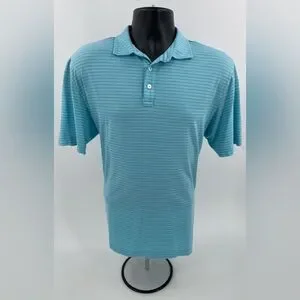 Peter Millar Summer Comfort Polo Shirt Men's Large L Aqua & Blue Striped