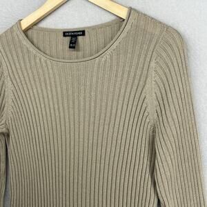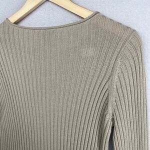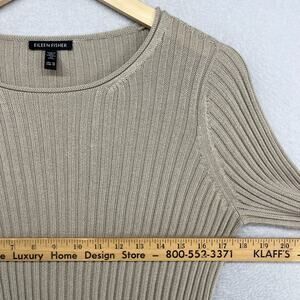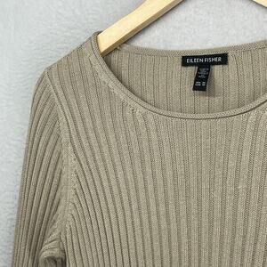 EILEEN FISHER Sweater XS Organic Cotton Tencel Ribbed Rolled Round Neck Beige