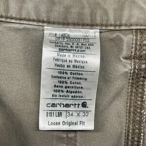 CARHARTT Pants Mens 34x32 B151 Utility Work Canvas Carpenter Khaki Cotton Beige