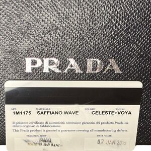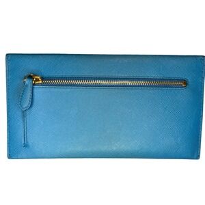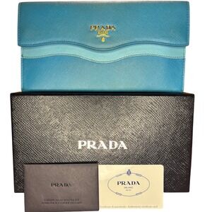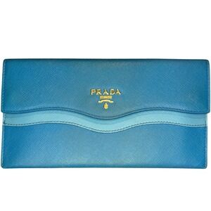 Authentic Vintage Prada Saffiano Wave Blue Leather Long Flap Wallet Celeste Voya