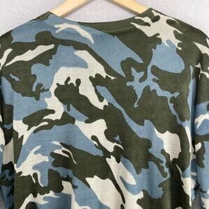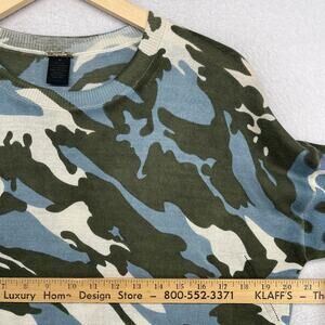 MAGASCHONI Sweater Womens M Silk Cashmere Tunic Camo 3/4 Sleeve Green Blue