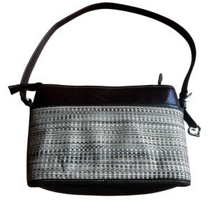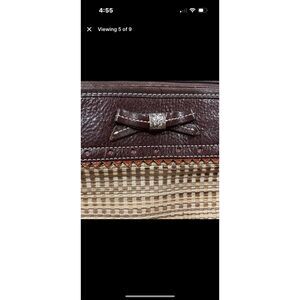Brown leather and woven fabric