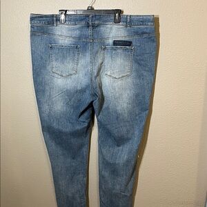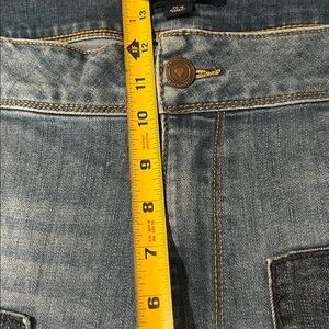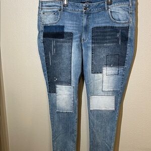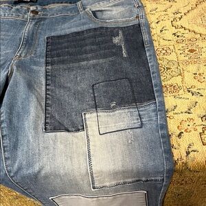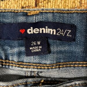 24/7 woman’s plus size 26 patchwork jeans. Distressed. Good pre owned condition. Good amount of stretch. See pics of approx measurements to insure fit.