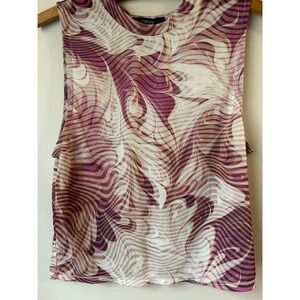 A mesh sleeveless tank top showcasing a captivating swirl print. This top features a comfortable fit and a vibrant pattern that adds a touch of flair to any outfit. Perfect for layering or wearing on its own, it's ideal for a casual day out, a concert, or a night with friends.