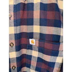 Carhartt Relaxed Fit Plaid Flannel Shirt Navy Maroon Tan Men's Size L