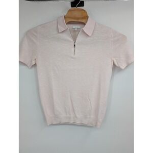 Reiss Men's short sleeve half zip knitted polo shirt pink XS
