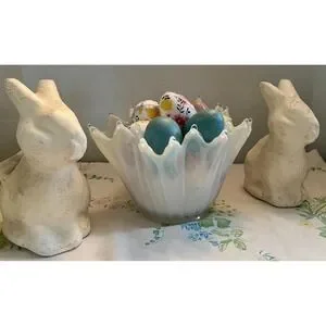 vintage glass Fostoria Heirloom handkerchief bowl blue and white