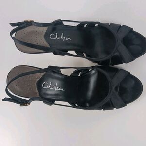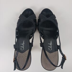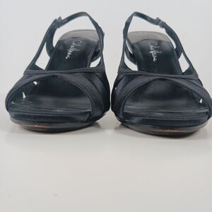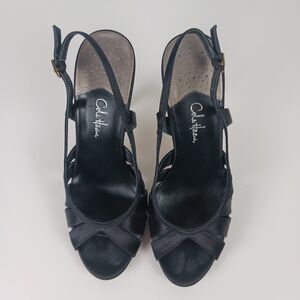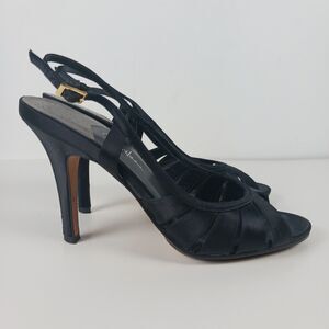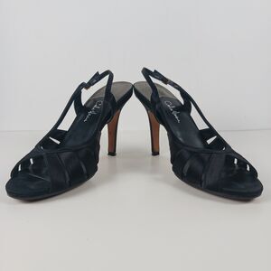 Cole Haan Sari Air Sling Black Satin Size 8.5 Open Toe Heels Air Tech Footbed