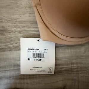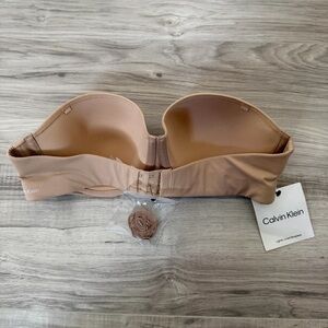 Brand new with tags Calvin Klein lightly lined strapless bra in a versatile nude shade. Size 36B (US). Features smooth molded cups for a seamless look under clothing, supportive underwire, and includes removable straps for multiple styling options.