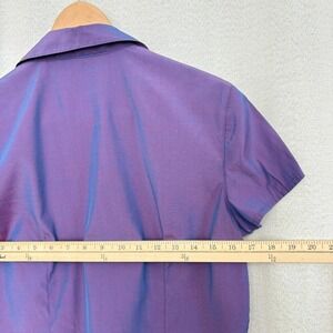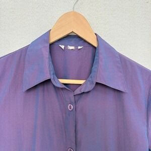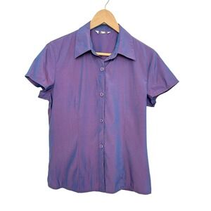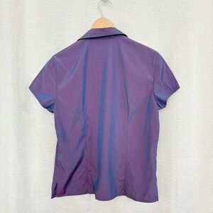Y2k Iridescent Millennium 2000s Purple Short Sleeve Collared Button Up Shirt Top