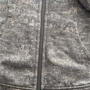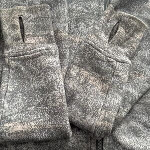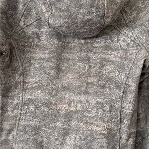 Stylish gray patterned zip-up jacket with side pockets. Perfect for casual wear.Gently used but in excellent condition.This is a scuba full zip with hair tie in a size 6.