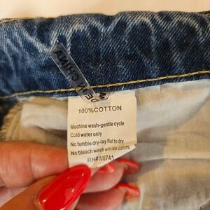 A touch of rebelliousness defines these uniquely designed jeans, marrying edgy distressing with vibrant floral embroidery. The classic blue denim is elevated by artful rips and tears, strategically placed for a stylishly undone look. Brightly colored flowers cascade down one leg, adding a playful, feminine contrast to the distressed details. Consider pairing these jeans with a casual tee and sneakers for a weekend hangout, or dress them up with a blouse and boots for a concert. Please look at all photos for details.