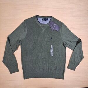 Nautica Navtech Sweater Mens M Green Pullover Crewneck Ribbed Cotton Blend NEW