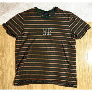 Huf Worldwide T Shirt Men's Size Medium Green Striped Short Sleeve Cotton Tee