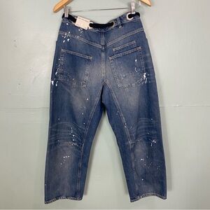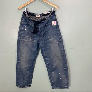 Free People We The Free Moxie Pull On Barrel Jeans Paint Splatter Blue Size 28