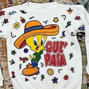 Vintage 1980s Tweety Bird Looney Tunes Que' Pasa Cartoon Crewneck Sweatshirt