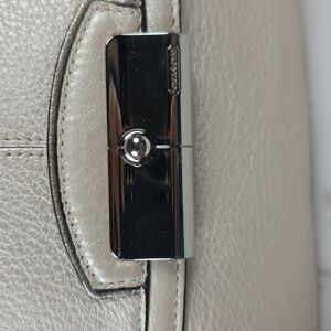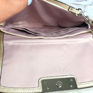 COACH KRISTIN METALLIC CHAMPAGNE SILVER LEATHER FLAP CROSSBODY SMALL BAG PURSE