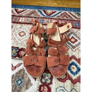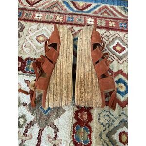 Vintage Free People US 8.5 9 EU 39 Leather Strappy Platform Sandals Cork Heels