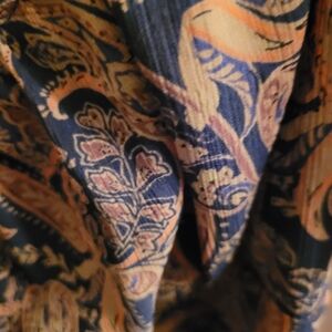 Stylish Dynamite dress with elegant paisley design. Features a charming neckline and short sleeves. Lined.