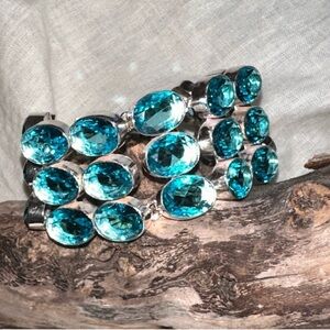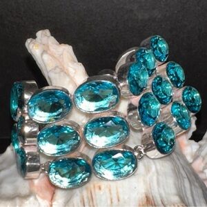 Sparkly 3-tiered Blue Topaz Cluster Statement Cuff Bracelet