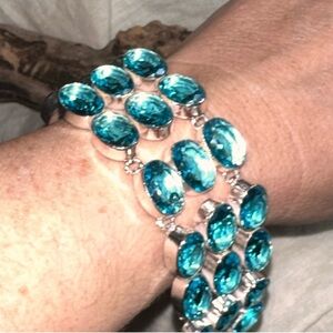 Sparkly 3-tiered Simulated Blue Topaz Cluster Statement Cuff Bracelet