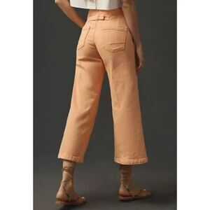 PILCRO ANTHROPOLOGIE The Kit Cropped High-Rise Wide-Leg Jeans Sz 31 Peach Orange