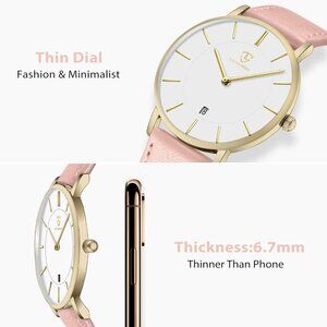 Classic and stylish black dial, elegant rose gold time marks and small date window. Fashion design suitable for men and women.