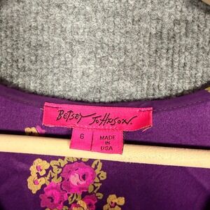 Betsey Johnson Size 6 Tiered Midi Shift Dress Purple Brown Silk Floral V Neck