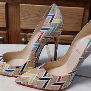 Christian Louboutin Multi-Color Cork Chevron Shoes