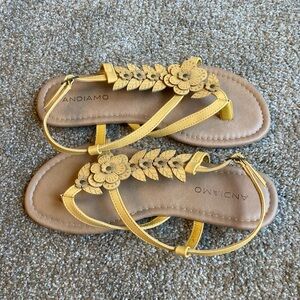 Andiamo Ascout Mustard Yellow floral Boho Sandals T Strap Thong Size 7.5Wide