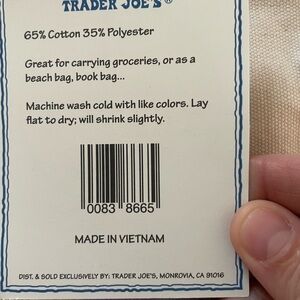 Large Trader Joe’s Lavender/ Pink Canvas Tote Bag, NWT