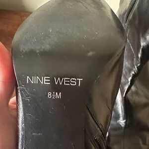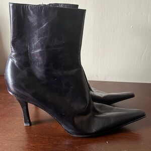Nine West Black Pointed Toe Leather Ankle Booties with Side Zipper US8.5