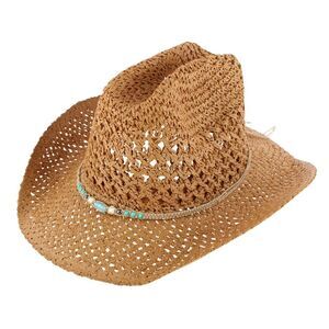 Add effortless Western charm to your warm-weather wardrobe with this straw cowboy hat designed for both style and comfort. Crafted from lightweight breathable straw, this classic cowgirl hat features a shapeable brim that lets you customize the curve for the perfect Western silhouette while providing sun protection during outdoor adventures. A beautifully detailed turquoise braided and beaded hatband wraps the crown, adding a pop of color and a Southwestern flair that pairs perfectly with denim, boots, and festival outfits. Inside, a soft adjustable sweatband creates a secure, comfortable fit so the hat stays in place whether you are at a country concert, rodeo, beach vacation, or summer festival. Equal parts practical and stylish, this straw Western hat is the perfect accessory for cowgirl fashion, Coachella-inspired looks, and everyday sunny day style. WARNING: This product can expose you to chemicals including lead and cadmium, which are known to the State of California to cause cancer, birth defects and other reproductive harm. For more information go to www.P65Warnings.ca.gov Brim measuring at 2.5 inches. Interior adjustable sweatband. Adjustable wired brim. Breathable. Beaded hatband. Warning: This product contains chemicals known to the State of California to cause cancer, and birth defects or other reproductive harm..