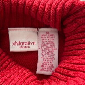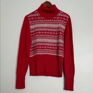 Cozy Red Fair Isle Turtleneck Sweater – Soft Wool Blend with Angora, Size XL