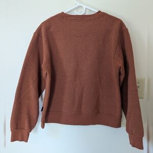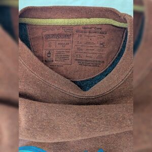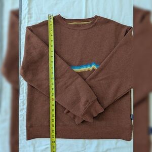 used Patagonia women's fleece lined crew neck sweatshirt with rainbow graphic. Size small but fits more like a medium in my opinion. measurements in photo.