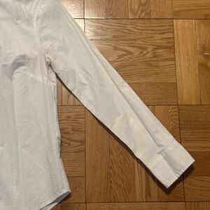 Crisp white long-sleeve button-up shirt with a tailored collar. Clean, versatile design ideal for office or casual wear. Lightweight, breathable fabric for all-day comfort. White color pairs easily with any wardrobe staples.