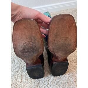 Southwestern influence is poured into the sole of Amberlyn. A beautifully inlaid Full Quill ostrich vamp and overlayed collar tie in the stitched Patent leather quarter. Amberlyn is a colorful cowgirl boot with Southwestern grit.