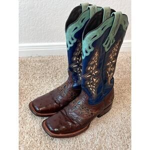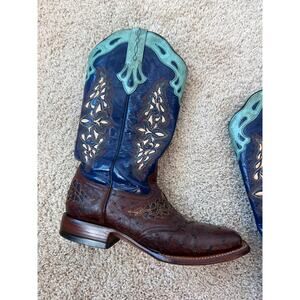 Lucchese Amberlyn Boots Blue Brown Full Quill Ostrich Western Cowgirl size 8 B