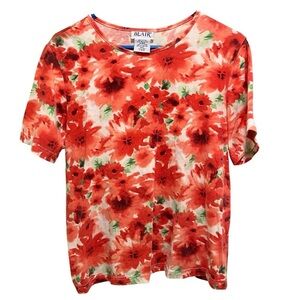Blair Vintage Floral Shirt Medium Red 80s 90s Cotton Blend Top
