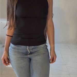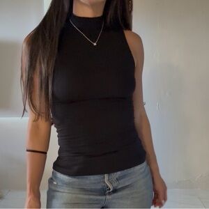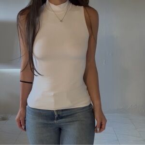 Two sleeveless mock neck tanks by Express. Smooth, stretchy fabric with a streamlined fit. Easy to layer or wear alone. Versatile basics for everyday styling.