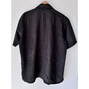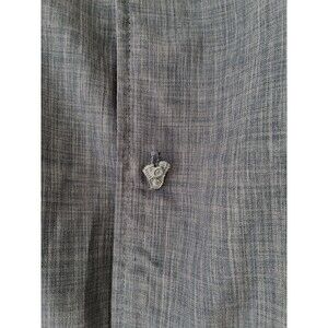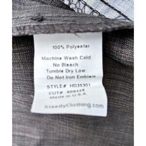 This Harley Davidson Cafe Las Vegas men's large shirt is a stylish engine button-up featuring a gray and black colorblock pattern with contrasting trim. The shirt is accented with embroidered Harley-Davidson logos and is made of breathable polyester material. Perfect for casual occasions, this short-sleeved shirt with a collared neckline and button closure is ideal for summer and spring wear. The shirt also pays homage to the motorcycle and bowling themes associated with the Harley-Davidson brand, making it a unique and eye-catching addition to any man's wardrobe.