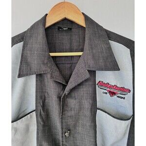Harley Davidson Cafe Las Vegas Mens Large Shirt Button Up Gray Black Bowling