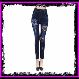 New Sick Fashion Heart Stretchy Jean Style Leggings Lily Hollow Seconds