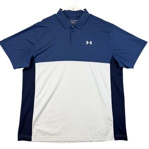 Logos/graphics: Tonal UNDER ARMOUR wordmark across the chest, tonal Under Armour UA logo on the left sleeve, and printed Under Armour logo with sizing at the inner neck.