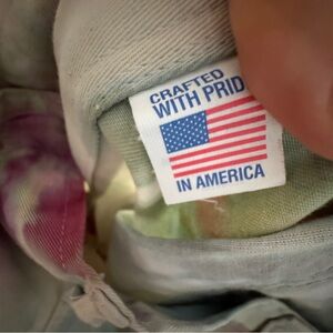 Free People cargo pants with a soft watercolor floral tie-dye. Relaxed, wide-leg silhouette with utility pockets. Lightweight, casual vibe for everyday wear.