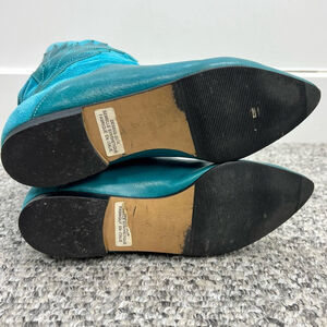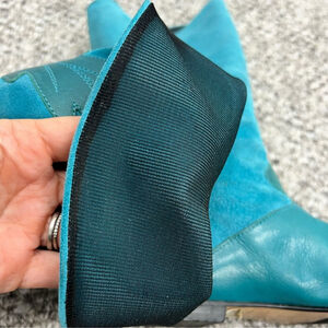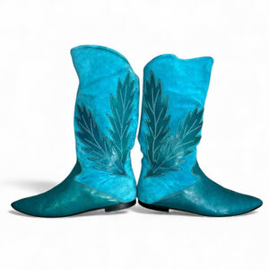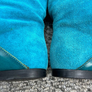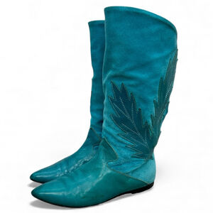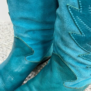 Vintage 70s 80s turquoise Italian suede leather applique mid calf flat boots 8