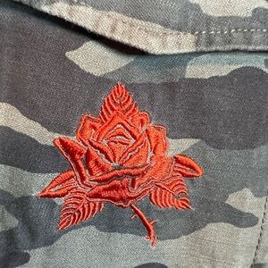 H&M DIVIDED Olive Green Camo Jacket with Red Embroidered Accents. Size L